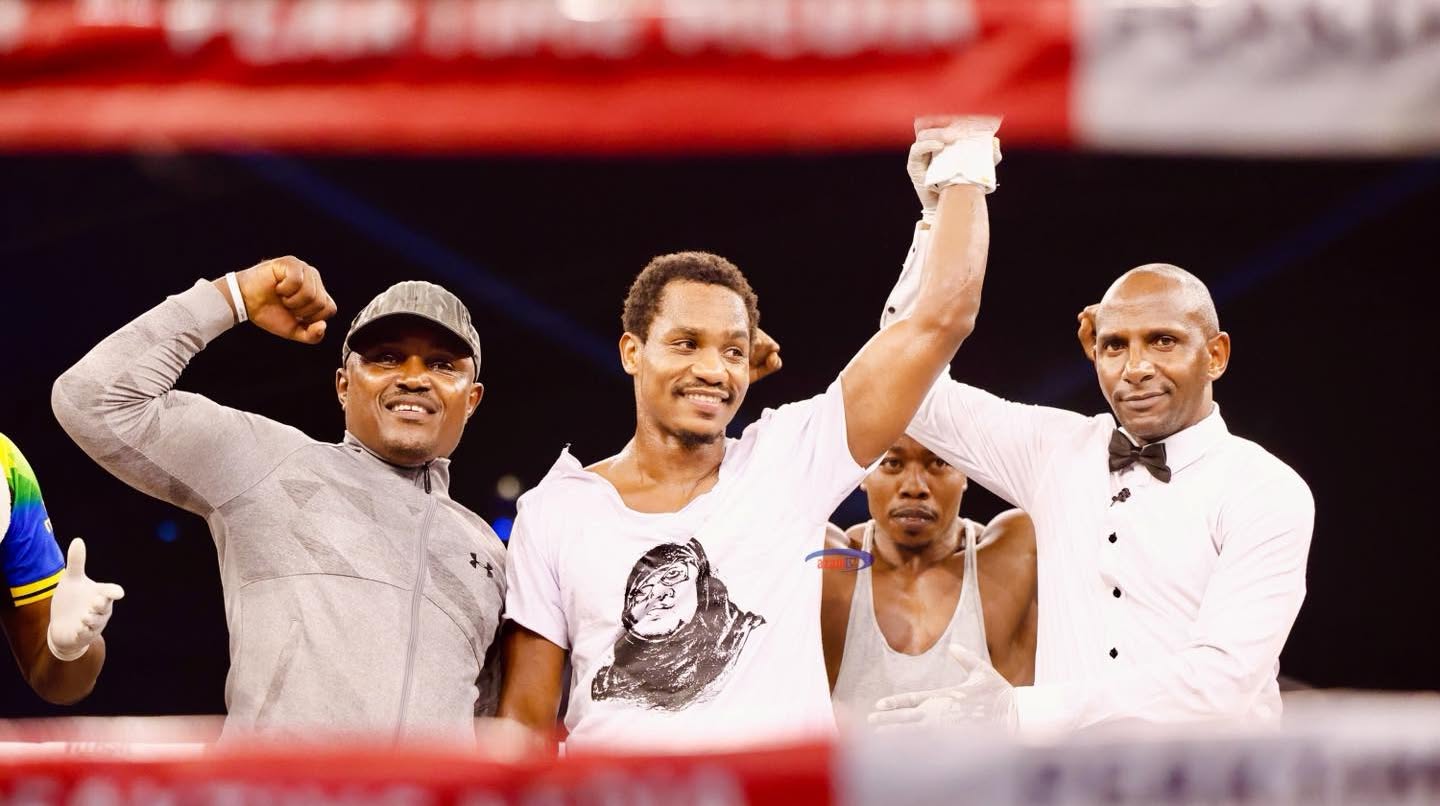 Bondia nyota wa Tanzania, Hassan Mwakinyo, ameendeleza ubabe baada ya kushinda kwa knockout (KO) dhidi ya mpinzani wake kutoka Nigeria, Eribo, katika pambano lililofanyika usiku wa leo kwenye Ukumbi wa Warehouse, Masaki — Dar es Salaam.