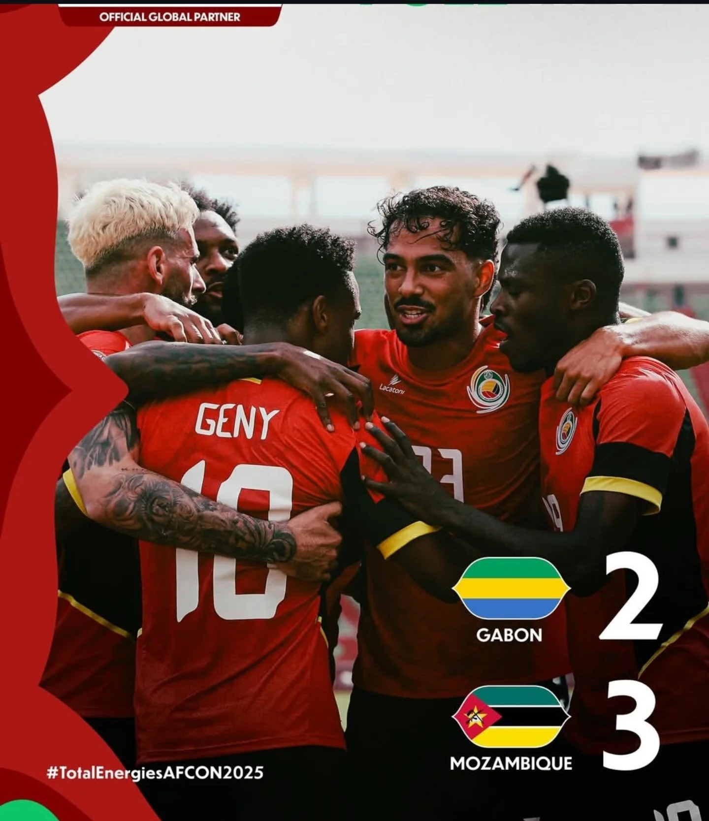 Kwa upande wa Msumbiji ni Faisal Bangal dakika ya 37, Geny Catamo dakika ya 42 kwa mkwaju wa penalti na Diogo Calila dakika ya 52.