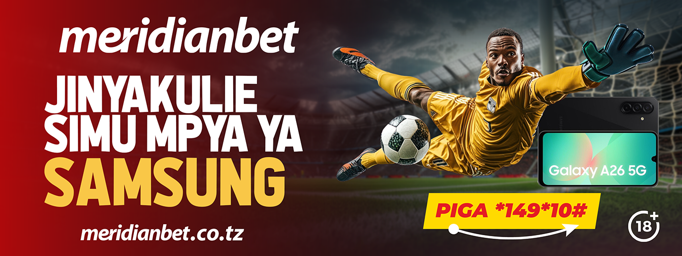 Katika msimu huu wa burudani na ushindani mkali ndani ya ulimwengu wa soka, Meridianbet imewasha moto mpya unaowapa wachezaji wote sababu ya kuongeza hamasa wanapotazama na kubashiri mechi za Ligi. Kupitia ofa yake kabambe, sasa unaweza kuweka bashiri kuanzia shilingi 5,000 tu na kuingia moja kwa moja kwenye droo ya kujishindia simu mpya na ya kisasa kabisa Samsung A26.