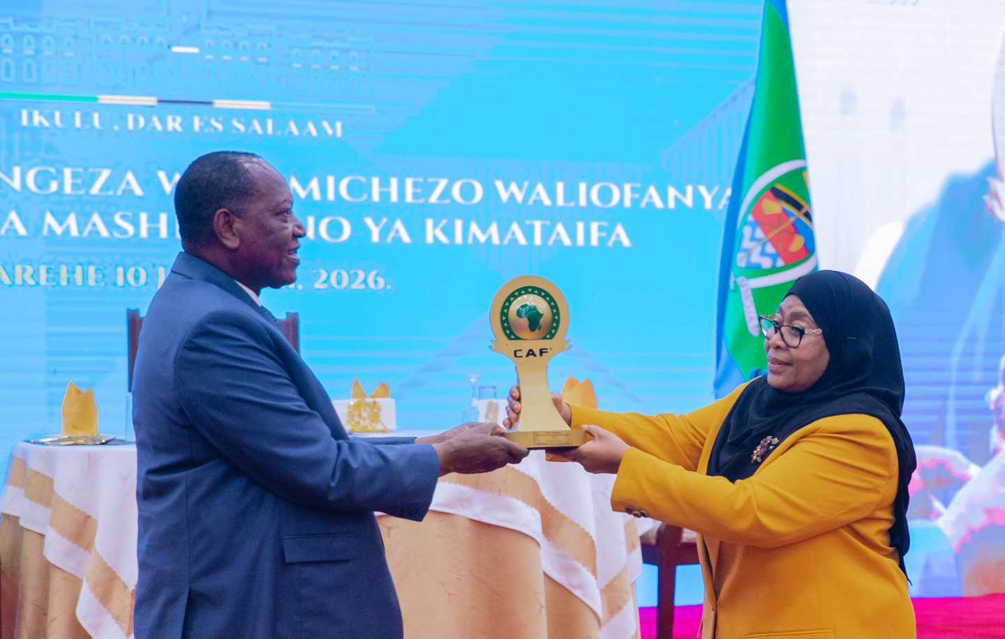 Jezi hiyo imekabidhiwa na Nahodha Msaidizi wa Taifa Stars, Bakari Nondo Mamnyeto, wakati wa hafla ya kuwapongeza wachezaji hao iliyofanyika Ikulu jijini Dar es Salaam, tarehe 10 Januari 2026. Hafla hiyo ilihudhuriwa na viongozi wa serikali, wadau wa michezo pamoja na viongozi wa Shirikisho la Mpira wa Miguu Tanzania (TFF).