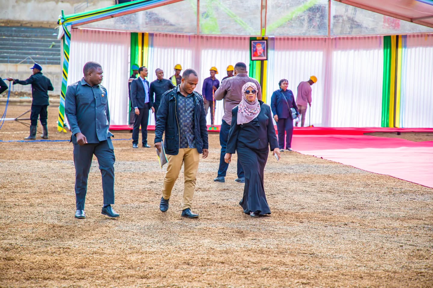 Maandalizi ya kumpokea Waziri Mkuu wa Jamhuri ya Muungano wa Tanzania Dkt. Mwigulu Nchemba leo Februari 24, 2026 katika uwanja wa mpira wa miguu Arusha ambao ni miongoni mwa viwanja vitakavyotumika katika mashindano ya Soka Barani Afrika (AFCON) 2027
