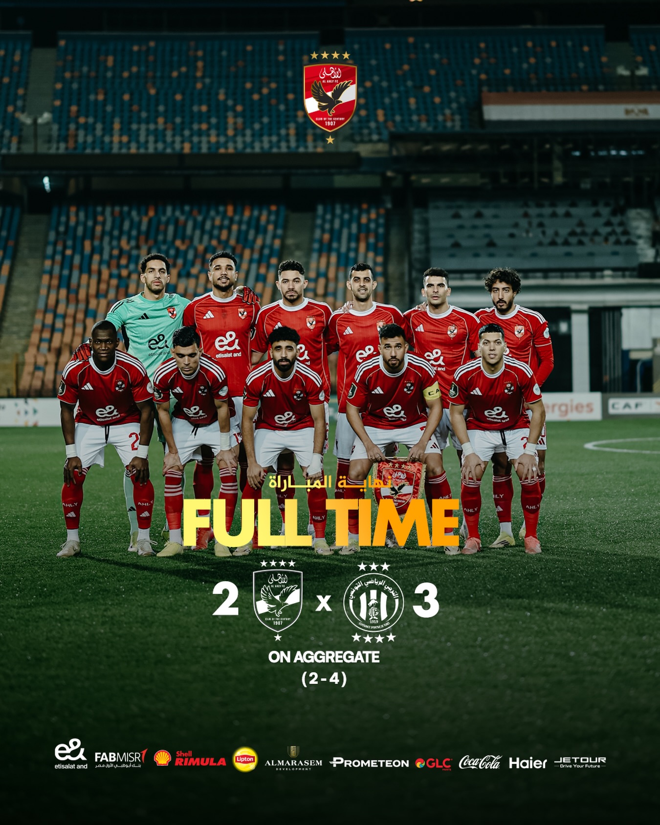 Mabingwa mara 12 wa Ligi ya Mabingwa Afrika, Al Ahly SC, wameaga rasmi michuano ya CAF Champions League baada ya kupokea kichapo cha mabao 3-2 kutoka kwa Espérance de Tunis katika mchezo wa robo fainali, na hivyo kutolewa kwa jumla ya mabao 4-2.